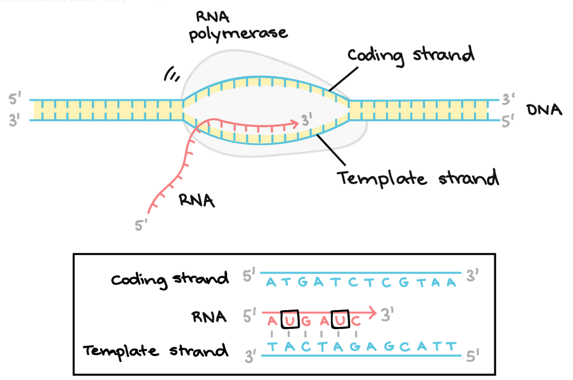Transcription elongation is a regulated process in which an RNA chain complementary to the template strand of DNA is synthesized as RNA polymerase moves along DNA. Transcription elongation is preceded by transcription initiation and is followed by transcription termination.