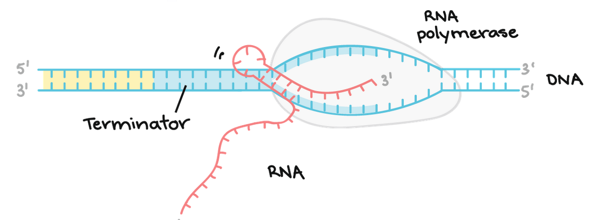 Transcription termination occurs when a transcribing DNA polymerase releases the DNA transcript and the newly-formed RNA. Termination is required for preventing the inappropriate transcription of downstream genes, and for recycling of the polymerase.